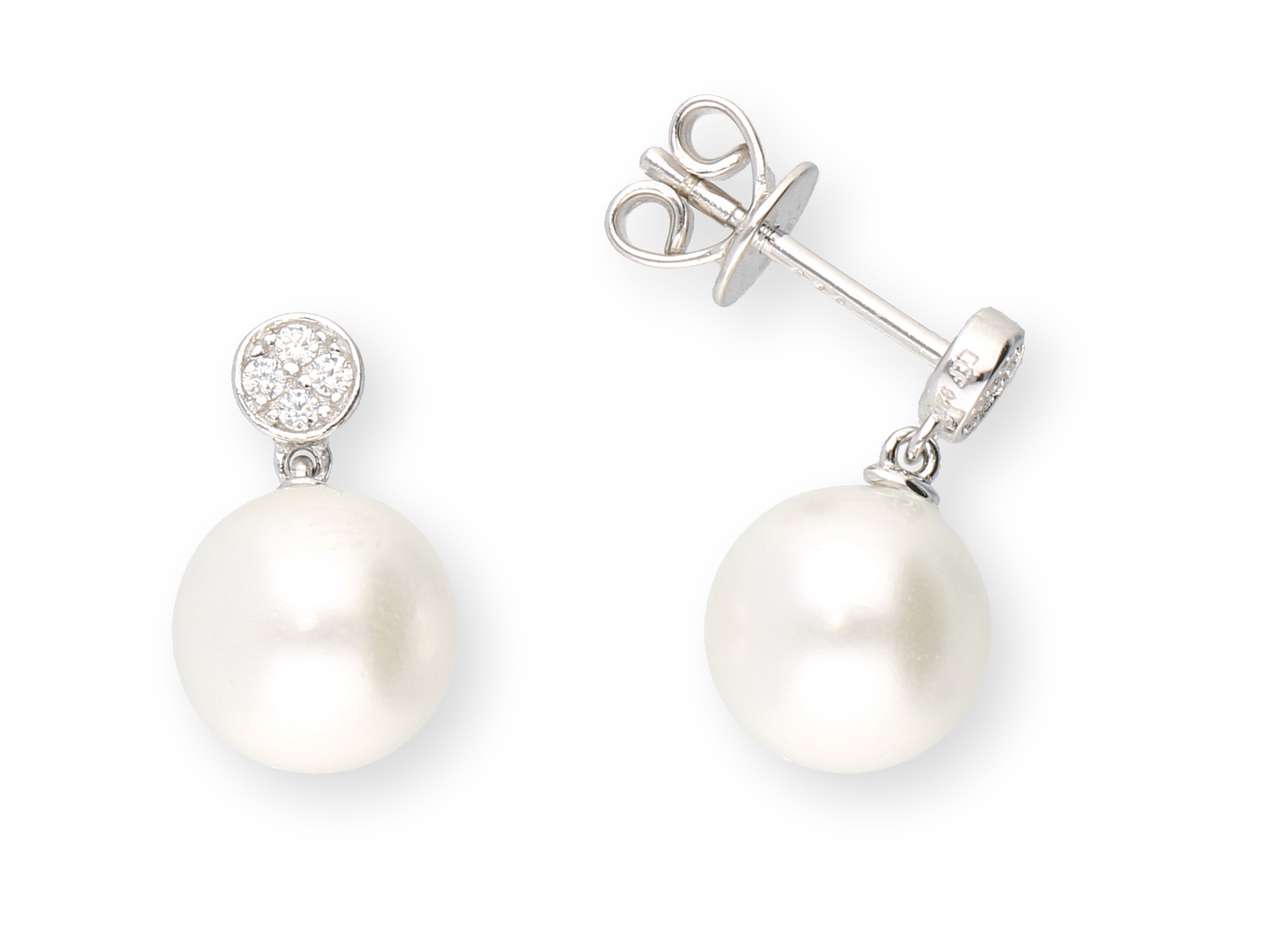 boucles d'oreilles perles, zirconia argent 925 - Pearls de Carat